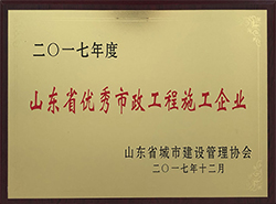 • 公司被評為“山東省**市政工程施工企業(yè)”
